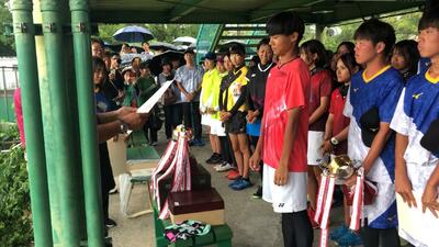 9月16日(月)、新人戦中部予選の学校対抗戦が草薙庭球場で行われました。