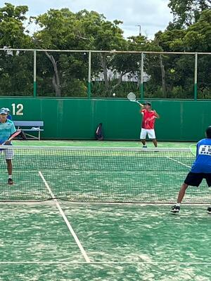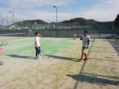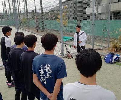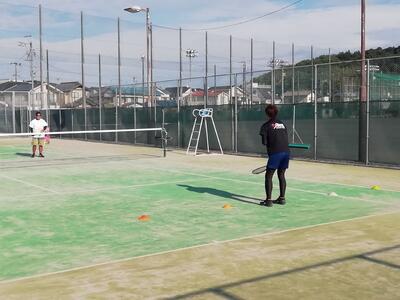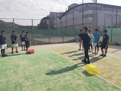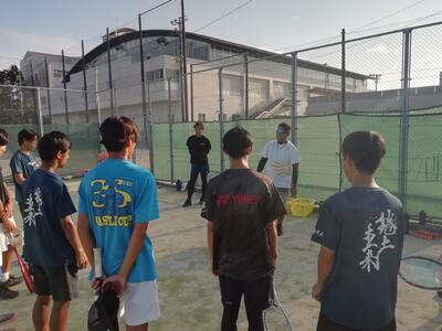 令和6年9月30日(月)、外部の指導者のクレストンの粟野さん、MKコーチの白井さんに本校テニ