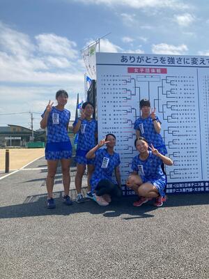 いつも応援していただいている保護者の方々、関係者の方々、ご協力ありがとうございます。今回の結果は私たちが目指す全国ベスト8には届きませんでしたが、学ぶことが多く、次の試合に繋がる大会となりました。2年生は次の大会が最後の選手もいるので、切り替えてもう一度練習に励んでいきます。引き続き女子テニス部へのご協力よろしくお願いします。 部長 山本陽毬