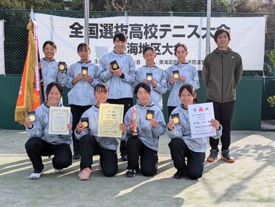 昨年度は決勝戦で惜敗し、新チームで一から練習に励んできた1年間でした。保護者をはじめOB、OG等テニス部関係者の方々に支えられながら成長し、今年度は結果を残すことができました。多くの方々の支えがあり、テニスに励めることに感謝の気持ちを持ってこれからも活動していきます。