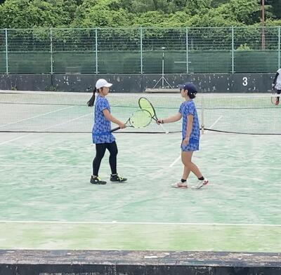 惜しくも県大会出場は逃しましたが、中井緋奈子(3年)・永野美咲(2年)ペアも、テニス経験者ではないのにも関わらず25位と健闘しました。