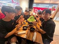試合前に気持ちを一つに 強豪チーム相手に善戦しました 男女とも福岡の食も満喫しました