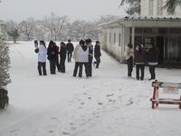 例年であれば春めいて暖かい日が多いのですが、初日は雪の天気となりました。生徒たちは静岡ではめったに見ない雪に興奮していました。2日目は気温が上がり、ほとんどの雪は午後までに解けましたが、思い出に残る合宿にもなりました。