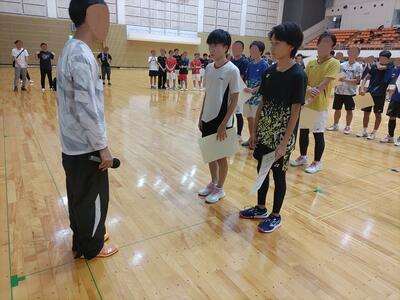 8月13日(水)草薙総合運動場このはなアリーナにて選手権大会県大会が行われました。本校からは初心者の部男子1名、女子1名の2名が参加しました。東中西各地区の予選を勝ち上がった選手たち48名が県の頂点を目指して試合をしました。本校生徒は女子の部で3回戦まで勝ち上がり、ベスト16に入りました。男子は1回戦で惜敗しましたが、ともに試合を通して多くのものを学んだと思います。