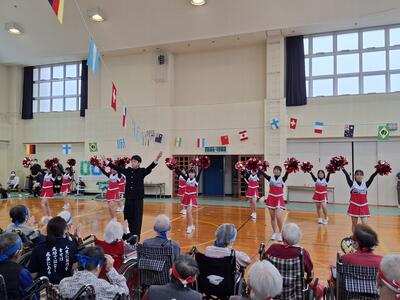 ポンポンを持ち笑顔で踊る生徒たちに、利用者から大きな拍手が送られました。