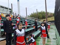 悪天候でしたが、エスパルスとサポーターの皆さんを応援するために、声や体の動きにメリハリをつけてパフォーマンスができました。活動終了後には、清水エスパルスのオフィシャルチアリーダーのオレンジウェーブと写真撮影した後で公式戦を観戦して、イベントを支える意義や達成感を実感しました。
