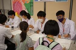 なお、このサイエンスフェスティバルの運営には高校生が関わっています。本校科学部からは8名の生徒が高校生実行委員として運営に関わり、8/11に行った出展者同士の交流会を企画したり、フェスティバル当日の会場保全などの役割を担ったりしました。