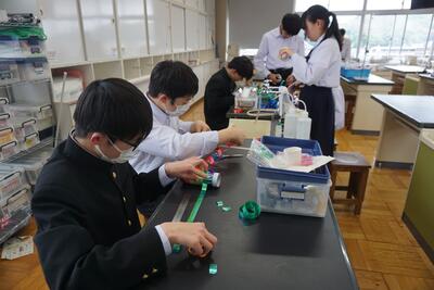 科学部では、市高祭で行うサイエンスショーの準備を進めています。市高祭は1年生にとっては初めての、3年生にとっては最後のサイエンスショーになります。