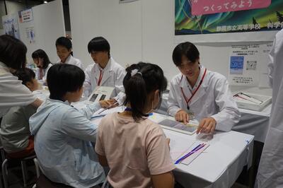 また、本校の4名の生徒が、高校生運営委員として出展する高校生どうしの交流や評価プログラムの準備、当日の会場の見回りなどを担当しました。