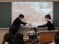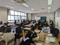 3月15日(水)のHR活動の時間で、今年の3年特進クラスの担任と卒業生(31HR 12名・37HR 4名)が2年特進クラス(21HR・27HR)の生徒を対象に講話と座談会を行いました。