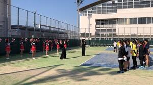 男女硬式テニス部の優勝を祈願して、エール・応援演舞を披露しました。