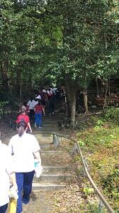 当日は八津山に登り、頂上にて各校の「発声」や「テク(型)」の練習を行いました。