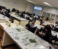 1年生はクリスマス仕様のアレンジメントに挑戦しました。講師の山本先生、橋本先生に丁寧に教えていただいたおかげで、とても可愛いリースが出来ました。家の玄関に飾りたいと思います!(町)