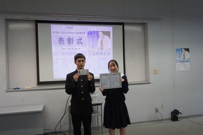 <科学探究科2年>はばたけ未来の吉岡彌生賞 奨励賞 投稿: Web編集用 (02/24) 課題研究で取り組んだ研究について、ゲーミング反応班が吉岡彌生賞に応募し、賞をいただきました。2月21日(土)掛川市役所にて表彰式がありました。 第10回はばたけ未来の吉岡彌生賞 奨励賞 受賞研究題目:「ゲーミング反応での色のグラデーション変化」 Tweet -