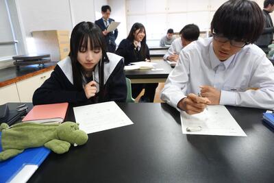 本年度はコロナ禍のため、校外の方々に向けた発表ができませんでした。そのような中、今回初めて中学生や保護者に向けて自分たちの行った研究内容を発表でき、緊張しながらも活発に議論することができました。