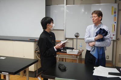 2月9日(月)科学探究科1年生は、探究プログラムⅠにて、東京都立大学Karel Svadlenka先生を講師としてお招きし、数学に関する講義をしていただきました。