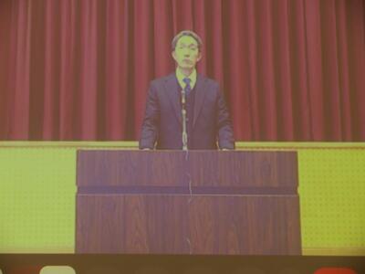 オンラインによる終業式 教室で校歌斉唱 ↓3年生学年集会