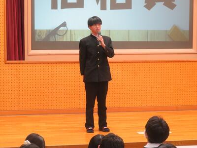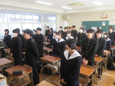 12月22日(月)終業式です。まず全校清掃で学校中をきれいにしました。そのあと表彰式と終業式になりましたが、本年は体育館が空調設置工事で使用できないため、オンラインで各教室にて実施しました。表彰式では科学探究科、文化部、運動部など多くの団体や個人が表彰されました。終業式では校長より「当たり前のことを当たり前にする」というお話がありました。その後は各学年集会、HRで終了しました。3年の学年集会では共通テストを前に3人の代表生徒が抱負を述べました。2026年が生徒全員にとって良き年になることを祈ります。
