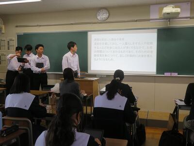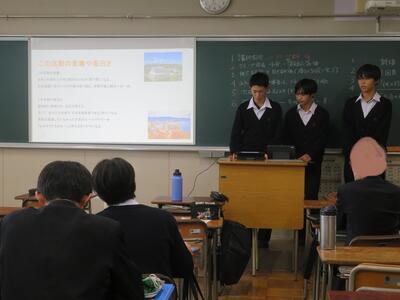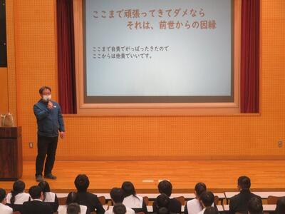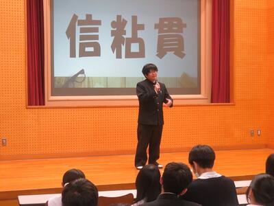 12月8日(月)7限に3年生学年集会を行いました。共通テストまであと40日。冬休みを前に今やるべきことや、心構えを昨年度3年生の学年主任だった先生と、本年度他校から赴任された先生2人にそれぞれの立場から熱いメッセージを語っていただきました。生徒達の心に刺さる内容であったと思います。3年生へ、あと少し、最後まで自分を信じて突っ走って下さい。