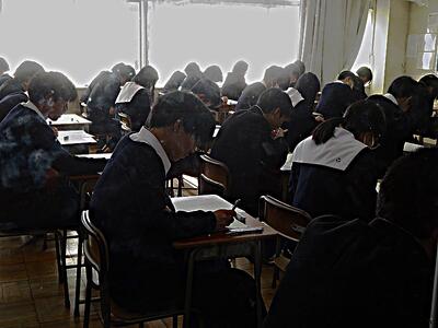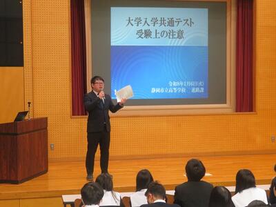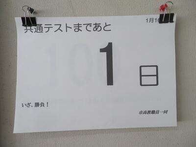 明日1月17日(土)と明後日18日(日)は大学入学共通テストです。前日である16日(金)に3年生は決起集会を行いました。校長と各学級担任、学年主任から一言ずつ激励の言葉ををいただきました。今までの努力が報われるよう、学校全体で3年生の健闘を祈ります。「頑張れ」