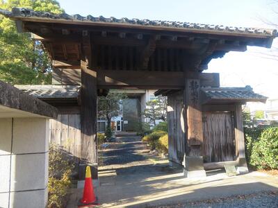 市高のシンボル田安門も冬日に輝いて見えます。明治の時代から約100年、国の登録有形文化財になっており、かつては正門として道路に対して正面を向いて建ち、その下を多くの生徒がくぐって登校していました。よく見ると軒の枠組みや金具、巴御紋の瓦などに歴史を感じます。