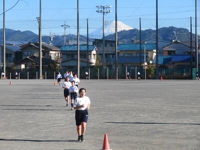 運動場では今月のマラソン大会に備えた授業が行われています。