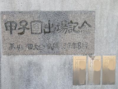 校内にはいくつかの記念碑が建っています。市高「愛唱歌」の碑、「質実剛健」の碑、「野球部甲子園出場」の記念碑(1962年、1982年選抜、2001年と市高は3回も甲子園に出場しています)、事務室前には「バンザイヒル」の像も立っています。