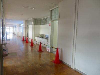 校内ですが、約半年覆われていたトイレ改修工事の壁がようやくとり払われました。看板によると使用できるのは1月30日からだそうです。