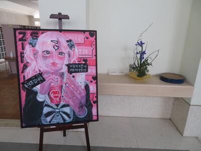 毎年恒例の市高アート展の作品が昇降口エントランスで展示されています。美術部、書道部、写真部と1年生芸術美術選択者の力作がエントランスを華やかに飾っています。なお、美術、書道、写真部のほかの作品は静岡銀行安東、沓谷支店ロビーにも展示されています。ぜひご覧になってください。