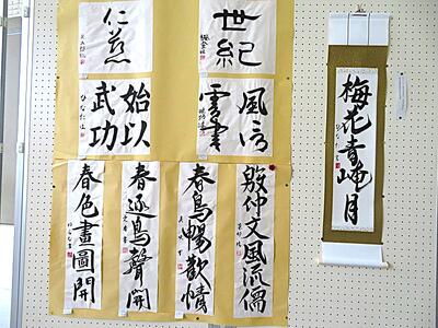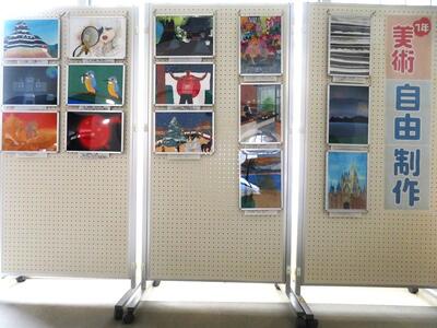1年生美術選択者の作品と、書道部の作品が新たに展示されました。やはり力作揃いです。