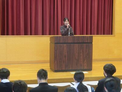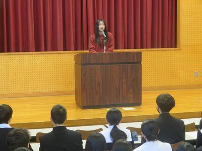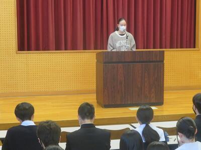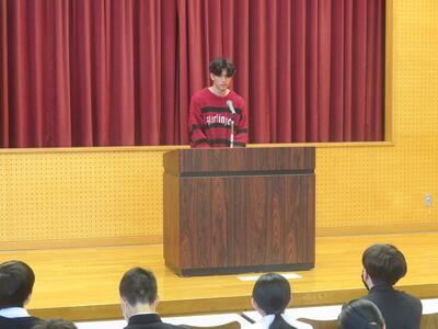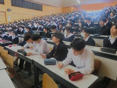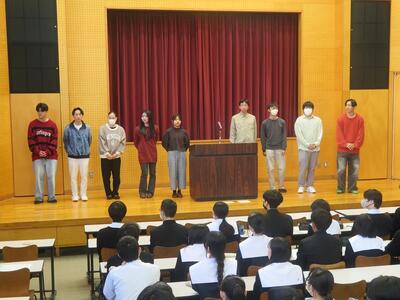 3月17日(火)2年生は学年集会でこの春卒業し、見事難関大学に合格した3年生の体験記を聴きました。9名の3年生がステージに立ち、それぞれの進路決定に至る経緯や苦労、受験勉強の仕方、その時々の気持ちのあり方を自分の言葉で伝えてくれました。2年生も共通テストまであと10ヶ月、すでに次の受験生としての生活が始まっています。先輩方からの直近の生の経験談は心に響いたと思います。頑張れ2年生!