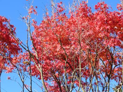 温暖化のせいでしょうか?モミジが今頃美しく紅葉しています。